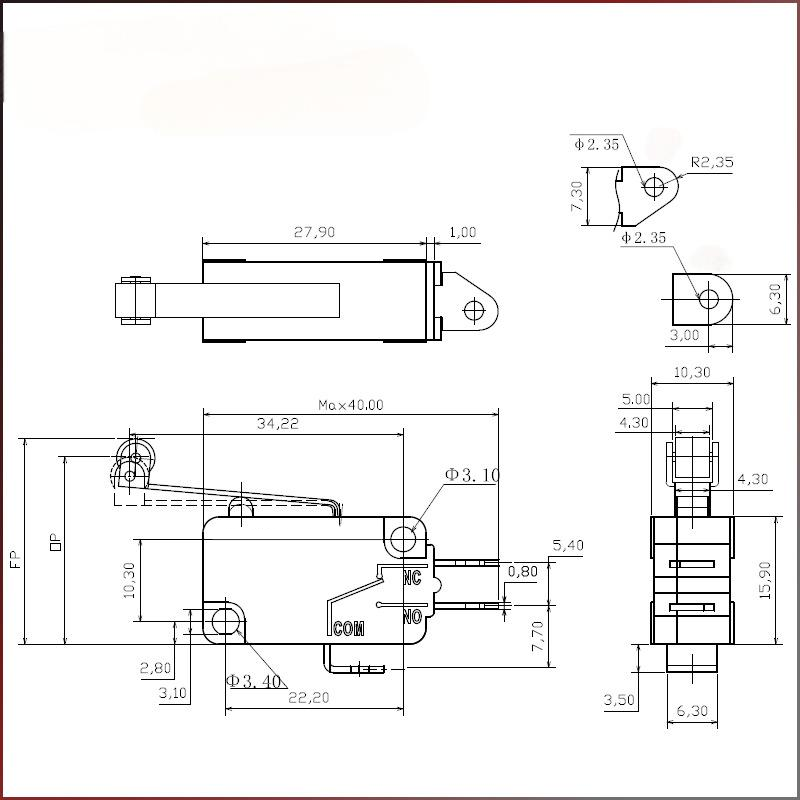 Ενεργοποίηση ακριβείας χιλιοστού του δευτερολέπτου: Χρησιμοποιεί έναν γρήγορο μηχανισμό κουμπώματος με σύντομη διαδρομή 0,5-1,6 mm και ρυθμιζόμενη δύναμη λειτουργίας 0,25-4 N, παρέχοντας γρήγορη και χωρίς καθυστερήσεις απόκριση για την αποτελεσματική πρόληψη των "ψευδών σκανδαλισμών". Κατάλληλο για σενάρια υψηλής ακρίβειας όπως χειριστήρια πόρτας φούρνου μικροκυμάτων και βιομηχανικούς αισθητήρες.