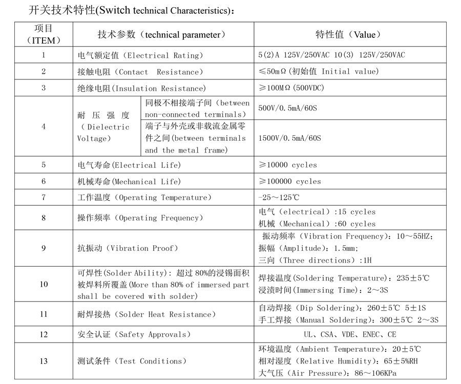 | 1 | Ηλεκτρική βαθμολογία | 5(2)A 125V/250VAC 10(3)125V/250VAC | |