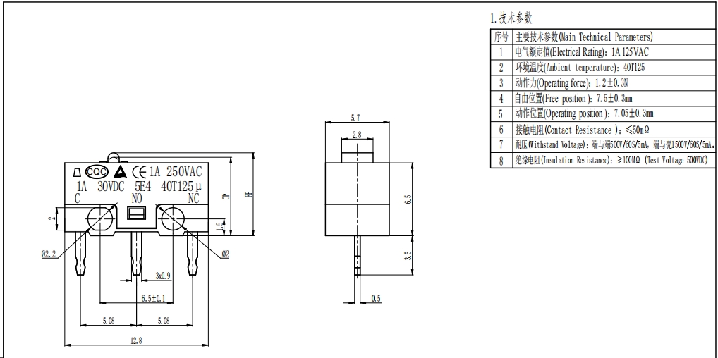 Χρησιμοποιώντας έναν πατενταρισμένο μηχανισμό γρήγορης ενεργοποίησης snap-action, ο χρόνος απόκρισης της σκανδάλης είναι ≤8ms, βελτιώνοντας την απόδοση κατά 25% σε σύγκριση με τους παραδοσιακούς μικροδιακόπτες. Η διαδρομή της σκανδάλης ελέγχεται με ακρίβεια μεταξύ 0,3-1,0 mm, με εύρος ισχύος λειτουργίας 1,5-4N. Η πιεστική ανάδραση είναι σαφής και ευκρινής, χωρίς κόλλημα ή ελεύθερο παιχνίδι, επιτρέποντας τον ακριβή έλεγχο του «ελαφρού άγγιγμα για σύνδεση, απελευθέρωση για να σπάσει», απόλυτα κατάλληλο για σενάρια που απαιτούν υψηλή ευαισθησία σκανδάλης. Οι επαφές είναι κατασκευασμένες από κράμα αργύρου-κασσιτέρου υψηλής καθαρότητας και επεξεργάζονται με ακριβή συγκόλληση σημείου, με αρχική αντίσταση επαφής ≤30mΩ. Το ονομαστικό φορτίο υποστηρίζει 1A/250V AC και 3A/125V AC, αποτρέποντας αποτελεσματικά τη θέρμανση ή την καύση επαφής όταν περνάει ρεύμα.