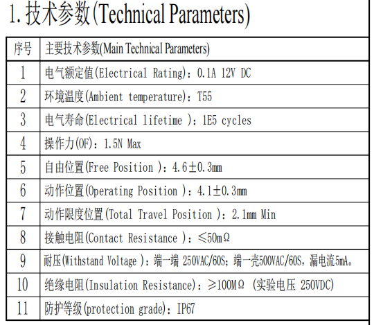 | 3 | Αντίσταση επαφής | ≤50mΩ | |